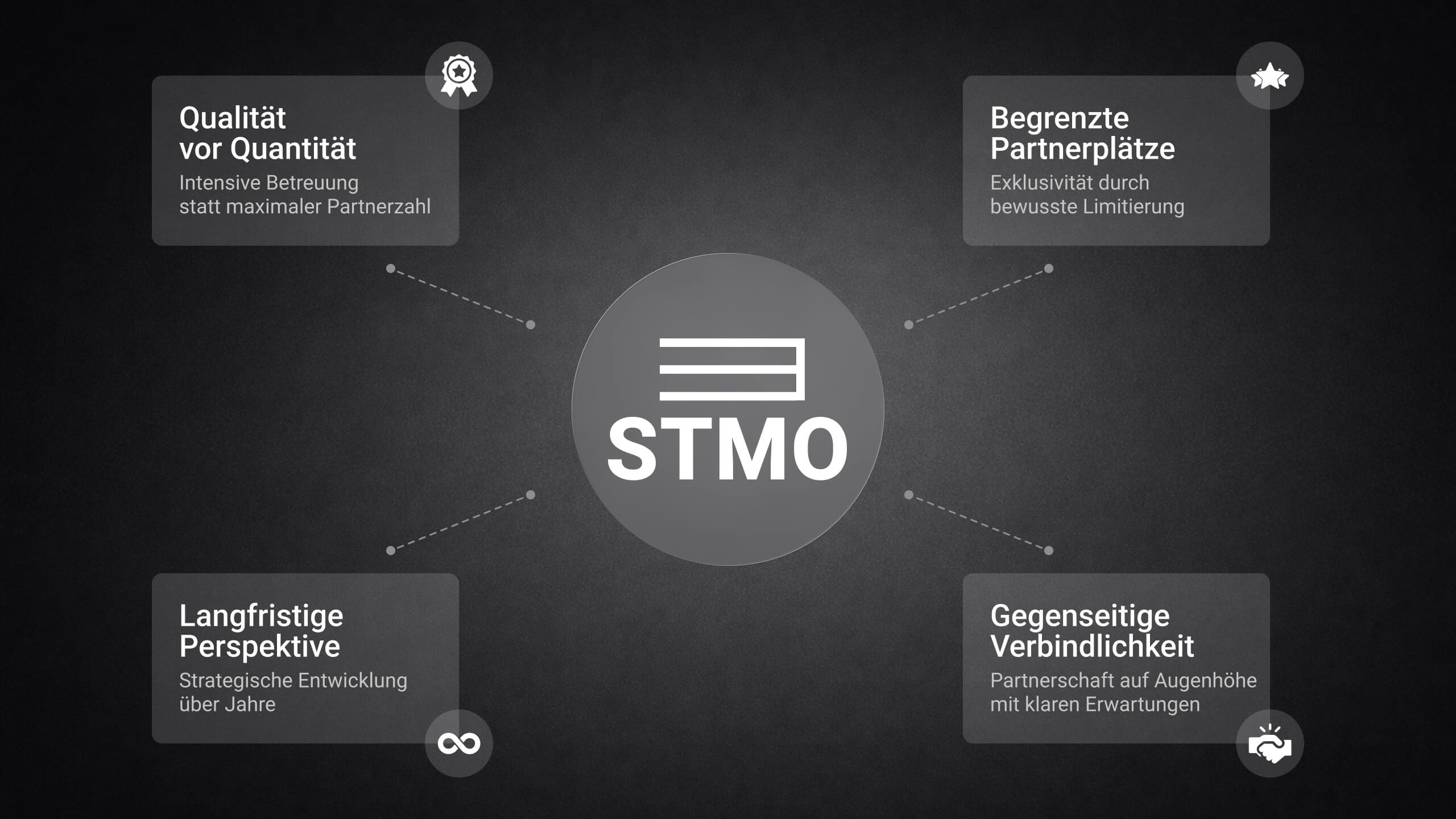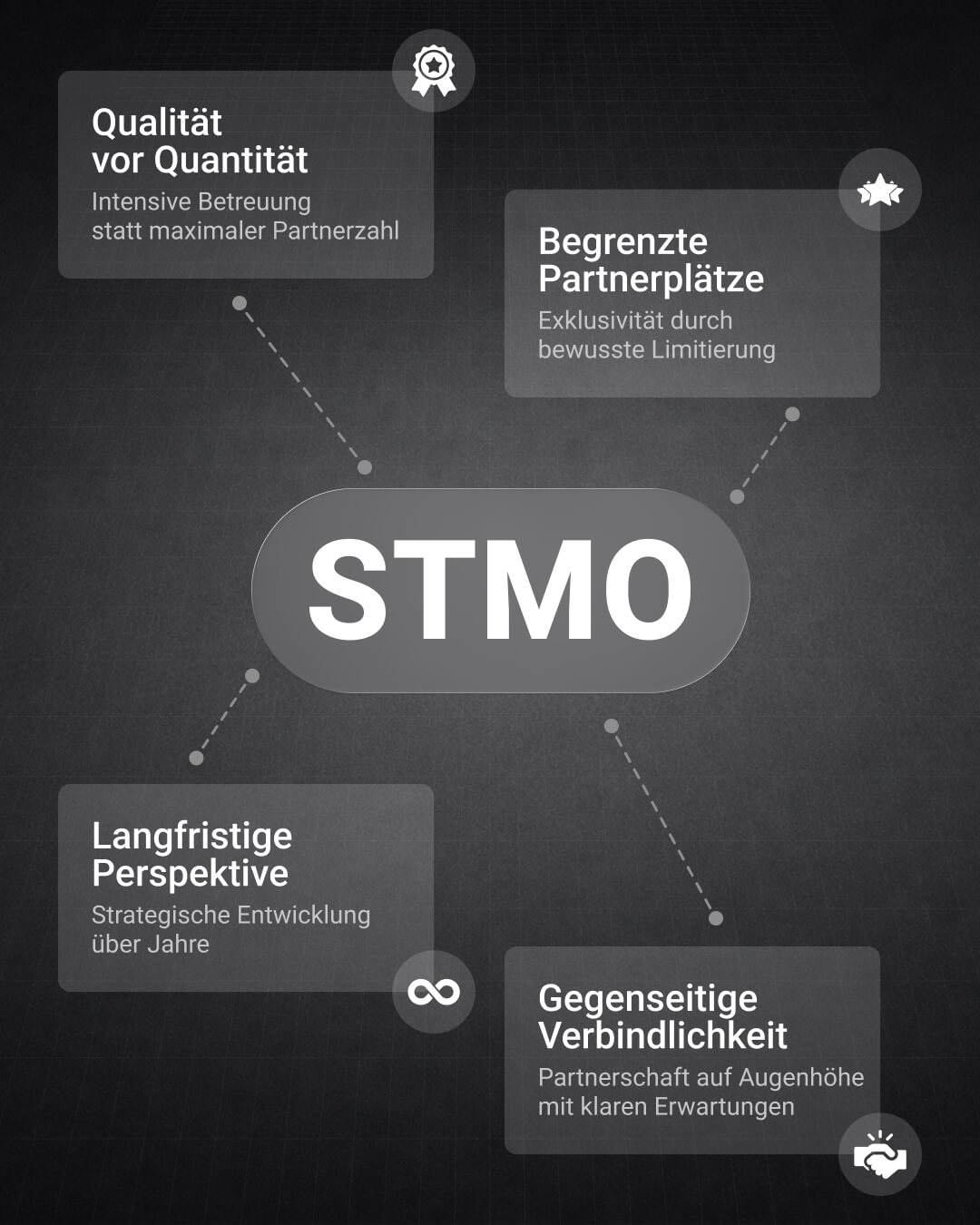 Der Fokus von STMO liegt klar auf Level-1- und Level-2-Partnerschaften – langfristige Kooperationen mit gegenseitiger Verbindlichkeit und gemeinsamer Entwicklung.